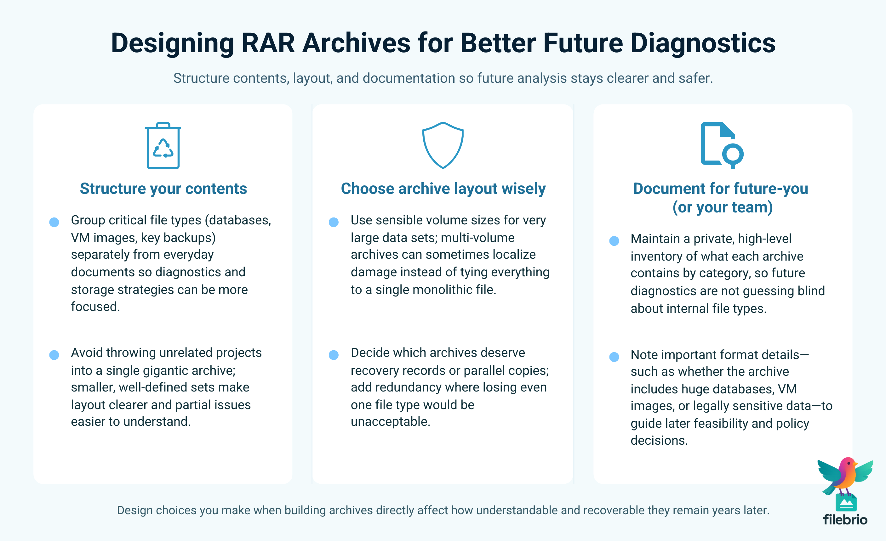The best time to think about file-type structure and diagnostics is before you need recovery. When you plan how to package and protect your data, you can make choices that support both strong security and realistic diagnostics later.