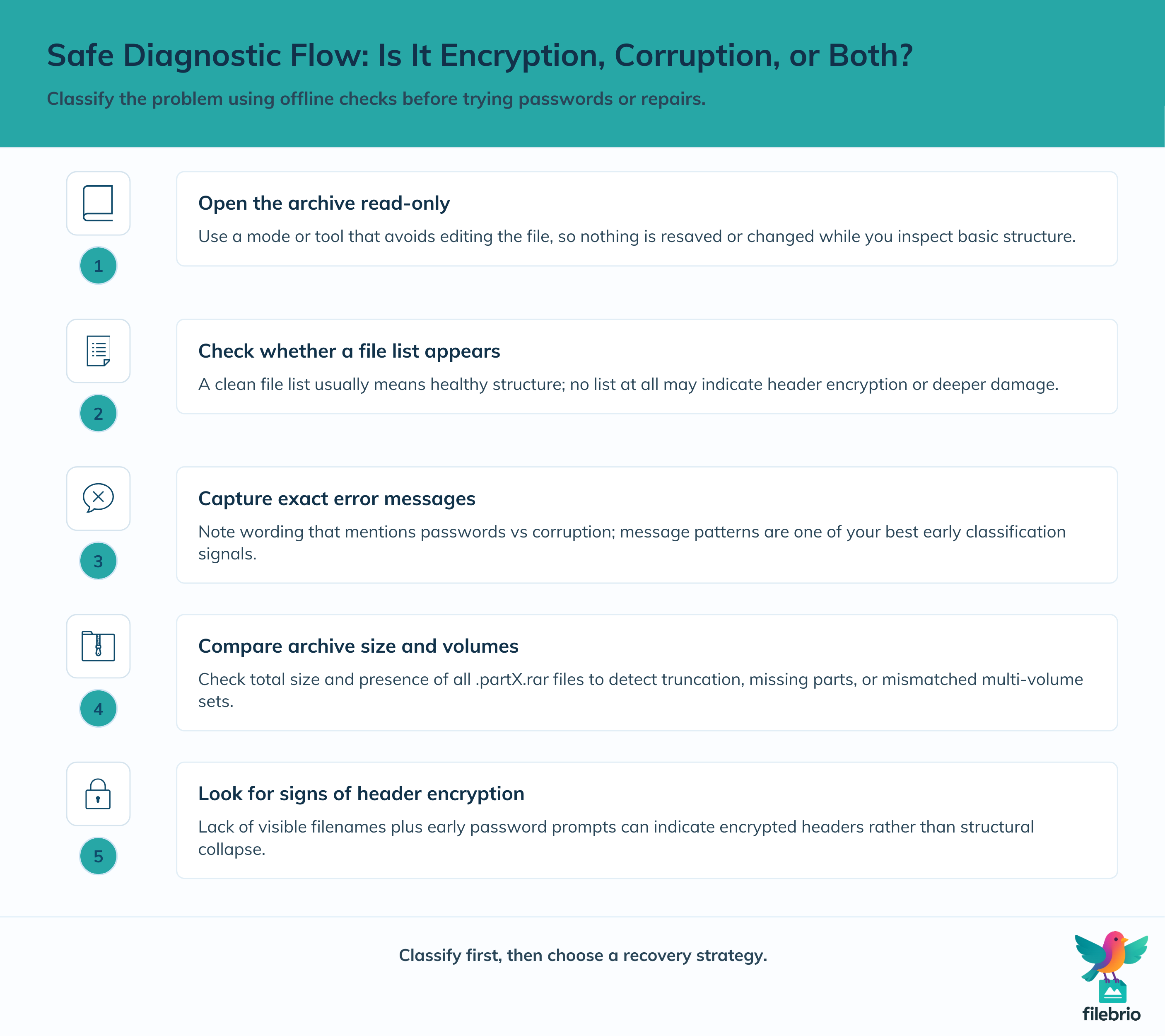 Once youâve gone through the anxiety of not knowing whether a RAR file is encrypted or corrupted, itâs worth adjusting how you create, store, and document archives in the future. The goal is to make future diagnosis easierâfor both you and any authorized colleagues who might handle the same data later.