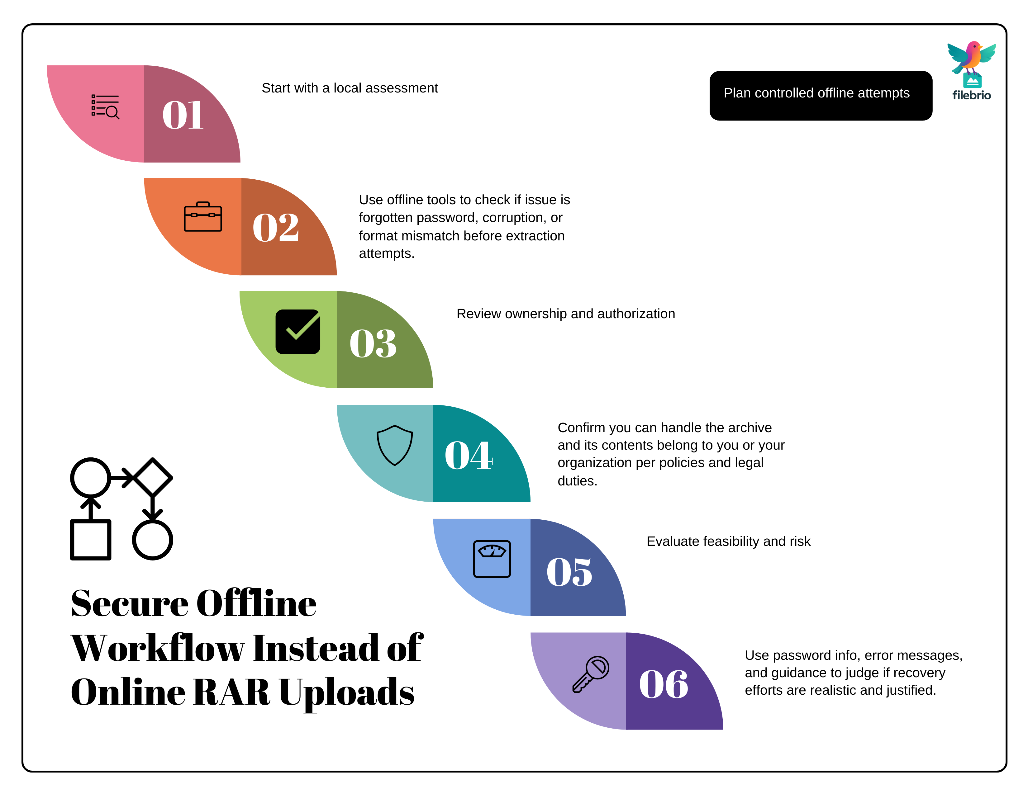 Part of a mature privacy and compliance posture is knowing when to stop — and documenting why. When you combine that judgment with an offline-first workflow, you can honestly say you did everything reasonable without exposing sensitive RAR archives to unnecessary risk.